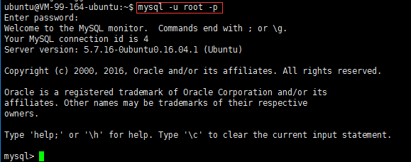 首先我们授权一个叫Ubuntu(叫什么由你定)的账户,并授予它远程连接的权力,命令如下: