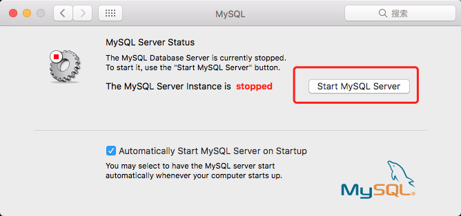 进入系统偏好设置,最下边一行,找到mysql打开,点击"Start MySQL Server",启动mysql