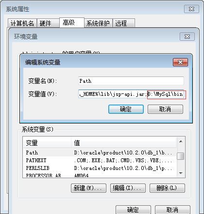 7.配置环境变量——>计算机右键"属性"——>"高级系统设置"——>"环境变量"——>"path"——>将bin目录的路径拷贝到path环境变量下。