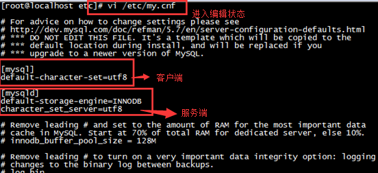 输入命令:vi /etc/my.cnf (进入可编辑状态)
