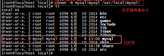 5、给目录/usr/local/mysql 更改拥有者