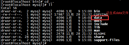 生成出一个data目录,代表数据库已经初始化成功