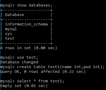 然后就可以正常在数据库里建表,查询,插入删除等等了,mysql的环境就装完啦。
