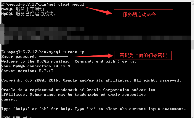 7:开始使用mysql,输入命令:mysql -uroot -p,然后输入刚才的初始密码
