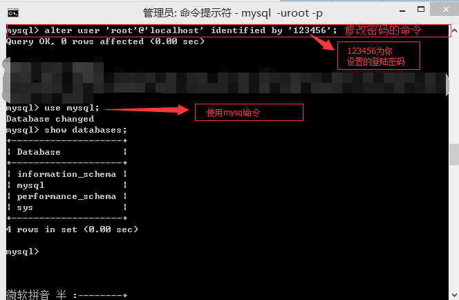 11.:注销系统,再进入, 输入 mysql -u root -p 使用用户名root和刚才设置的新密码123456登录。