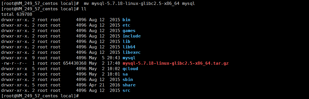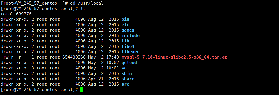 下载最新版的MySQL 5.7.18二进制包,上传至服务器的usr/local目录下