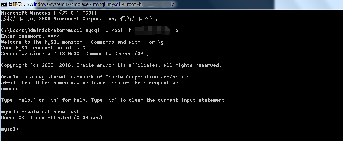 连接至MySQL,默认没有密码,直接回车后连接至MySQL