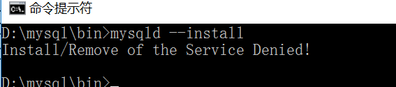 1、如果非管理员打开cmd输入 mysqld --install会报如下信息,说是命令被拒绝: