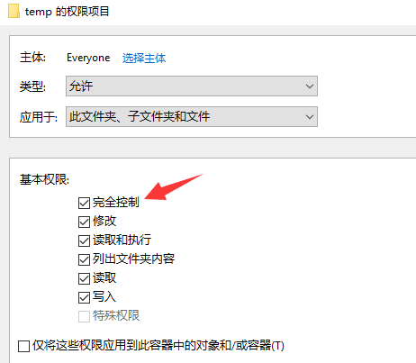 7)点击确定后,设置Everyone的基本权限为"完全控制"