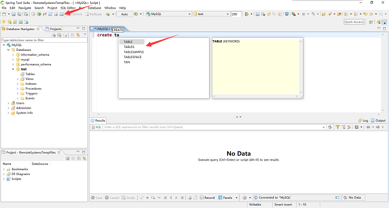有一些智能提示哦,比较可惜的是目前智能提示的还不够多,比如auto_increment都没提示,凑合用用吧^_^