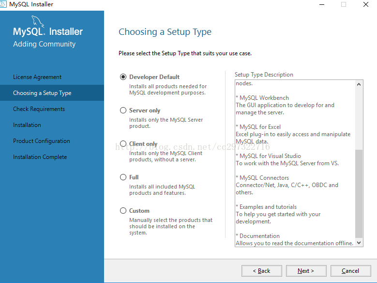 19、备注:安装时候,可以选择 customer用户自定义模式安装,可以选择只安装MySQL server x64,和workbench。安装过程更简单。