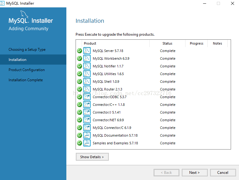 14、又回到安装程序界面,再Next(表示上面 MySQL Router安装完成)