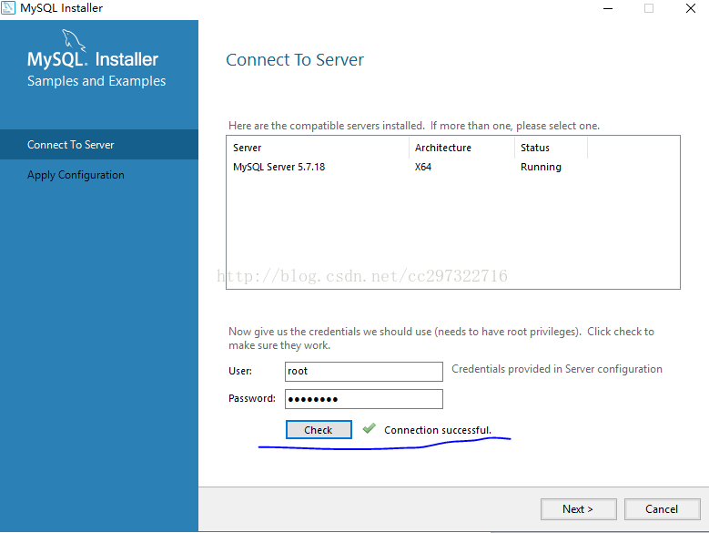 12、设置完后会返回到安装程序,继续 Next(表示上面MySQL Server安装完成)