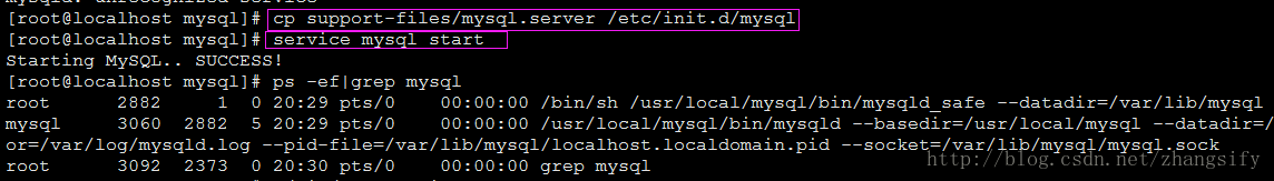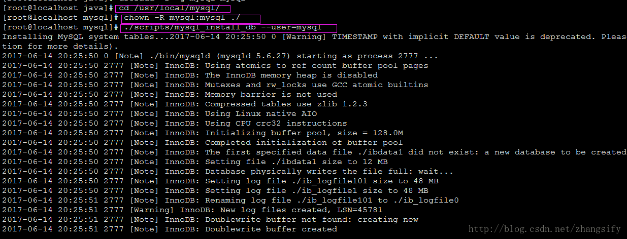 安装数据库:执行命令 ./scripts/mysql_install_db --user=mysql