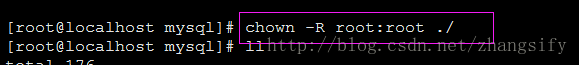 修改当前目录拥有者为mysql用户:执行命令 chown -R mysql:mysql ./