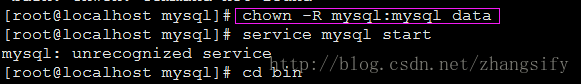 修改当前data目录拥有者为mysql用户:执行命令 chown -R mysql:mysql data
