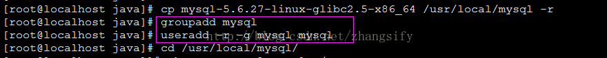 groupadd mysql和useradd -r -g mysql mysql