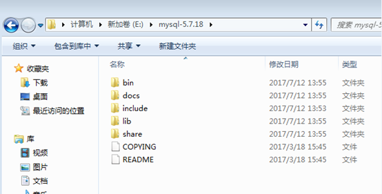 我下的是最新版的MySQL,解压后,目录如下: