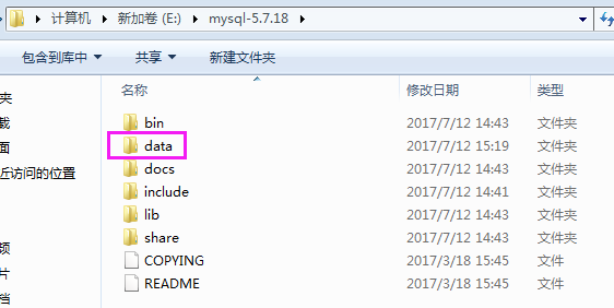 可以看到上图,mysql5.7.18它没有data目录,如果没有data目录,安装后启动的时候就会报错: