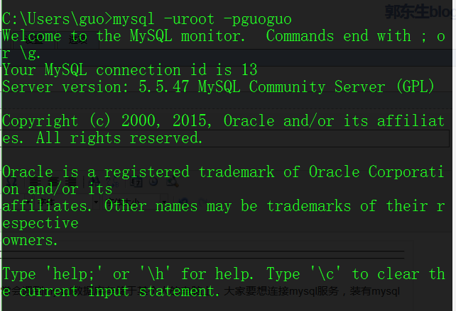 第一步,用dos连接上你的数据库,(我这里说的是win)