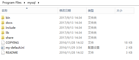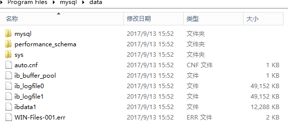 因为以上配置文件中的设置为datadir = C:\Program Files\mysql\data,所以文件夹名称为data。