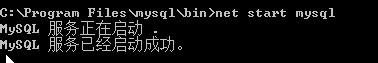 C:\Program Files\mysql\bin>net stop mysql MySQL 服务正在停止.. MySQL 服务已成功停止。 C:\Program Files\mysql\bin>net start mysql MySQL 服务正在启动 . MySQL 服务已经启动成功。