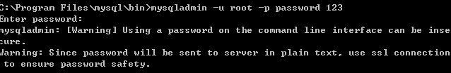 7、设置密码。执行 mysqladmin -u root -p password 新密码 命令,为root用户设置密码。此处为123。