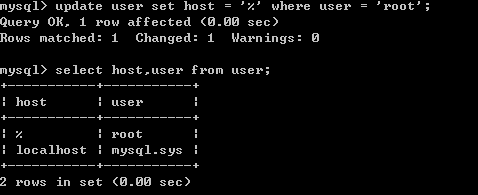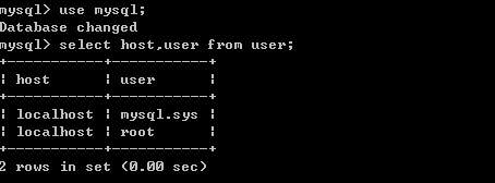 之后进入数据库,执行 use mysql 命令切换到其中的mysql数据库。