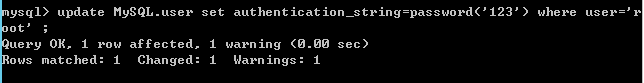 update MySQL.user set authentication_string=password('123') where user='root' ;