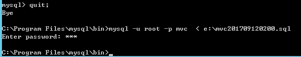 执行的命令是 mysql -u root -p mvc < e:\mvc201709120200.sql