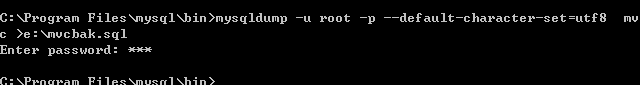 mysqldump -u root -p --default-character-set=utf8 mvc >e:\mvcbak.sql