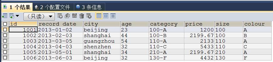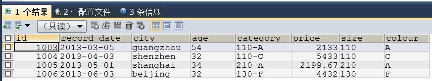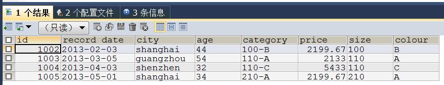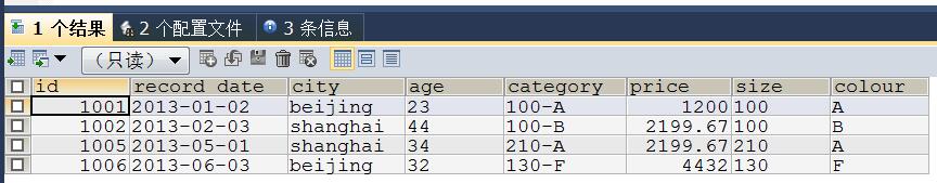 #按行提取 SELECT * FROM data1 WHERE city='beijing';
