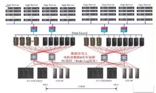 Oracle的解决方案在阿里快速发展时期支撑起了核心业务的需求。大概是这样的架构体系,看起来很庞大。里面的RAC算是一个贵族,用昂贵的商业存储,网络带宽要求极高,前端大量的小机业务还有不菲的licence费用。非常典型的IOE的经典架构。