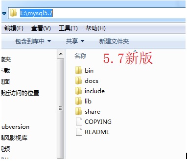 1、解压绿色版mysql,并改名为mysql5.7,如下图