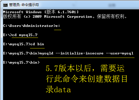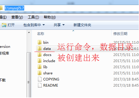 2、对于新版mysql5.7没有了data目录,我们需要运行命令创建