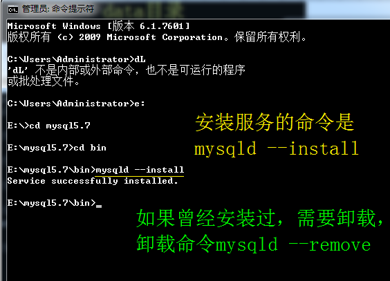 如果不需要mysql里,只需要运行mysqld –remove即可移除,如下图