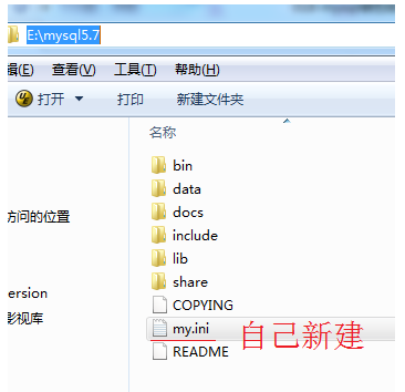 2、在mysql5.7的根目录下,新建my.ini文件,(5.7后没了这文件,自己新建),如下图: