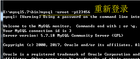 2、重新登陆,运行命令mysql -uroot -p123456