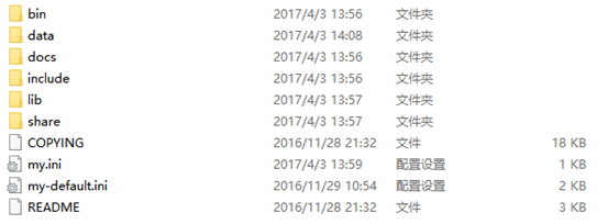 复制my-default.ini文件并粘贴,改名为my.ini