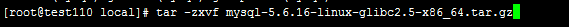 将下载的mysql安装包mysql-5.6.16-linux-glibc2.5-x86_64.tar.gz通过ftp工具上传到linux主机上(我这里上传到/usr/local/目录下)。进入安装包所在目录,执行命令:tar -zxvf mysql-5.6.16-linux-glibc2.5-x86_64.tar.gz解压安装包。