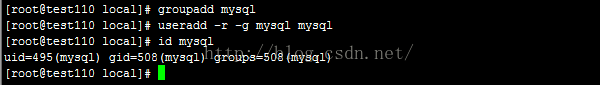 执行命令:groupadd mysql和useradd -r -g mysql mysql