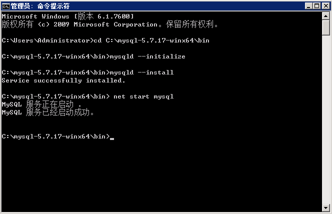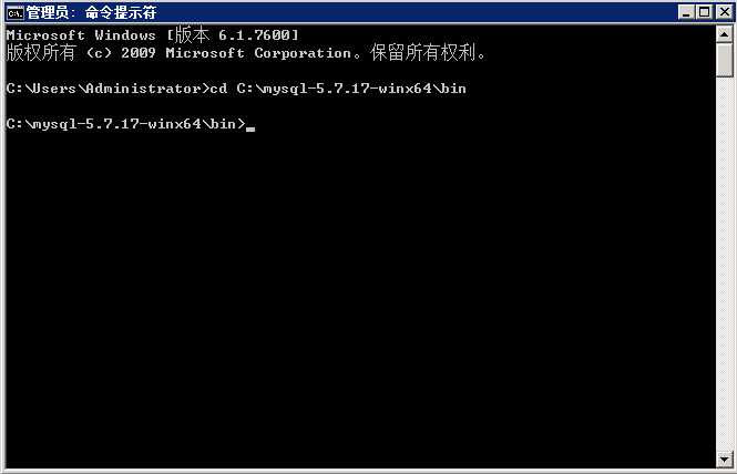 Cd到bin目录:cd C:\mysql-5.7.17-winx64\bin