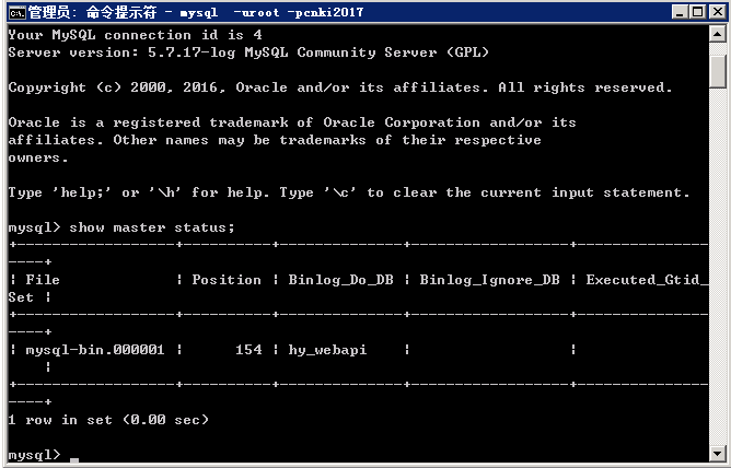 进入mySql:mysql -uroot -pcnki2017