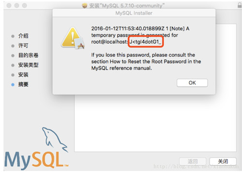 图中红色框内的部分即是mysql安装后的初始密码,请记住