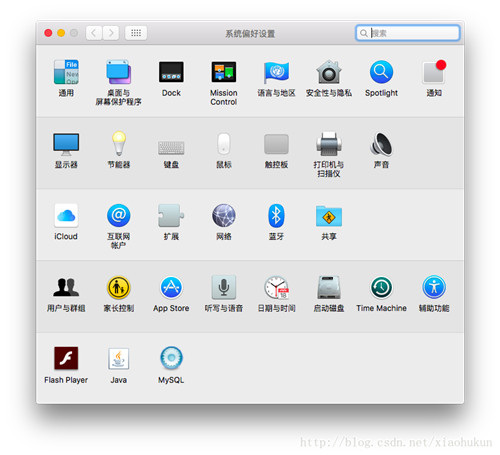 3.打开系统“偏好设置”,点击下面的mysql图标