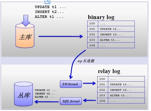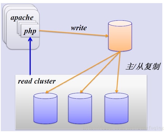 MySQL的主从复制解决了数据库的读写分离,并很好的提升了读的性能,其图如下: