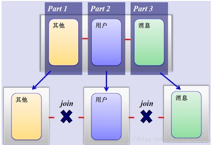 然而,尽管业务之间已经足够独立了,但是有些业务之间或多或少总会有点联系,如用户,基本上都会和每个业务相关联,况且这种分区方式,也不能解决单张表数据量暴涨的问题,因此为何不试试水平分割呢?