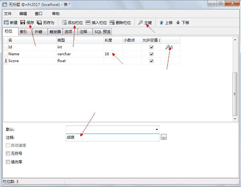 自动增长必须为索引(主键或unique)