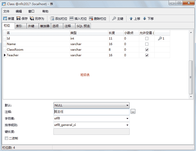 /* 列属性(列约束) */ ------------------