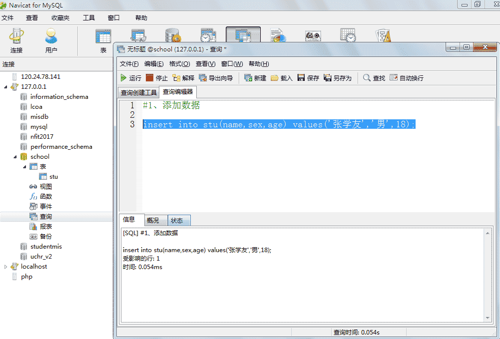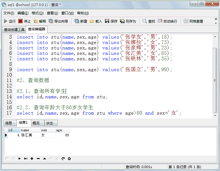 例:create table tab ( id int, stu varchar(10), age int, primary key (stu, age));